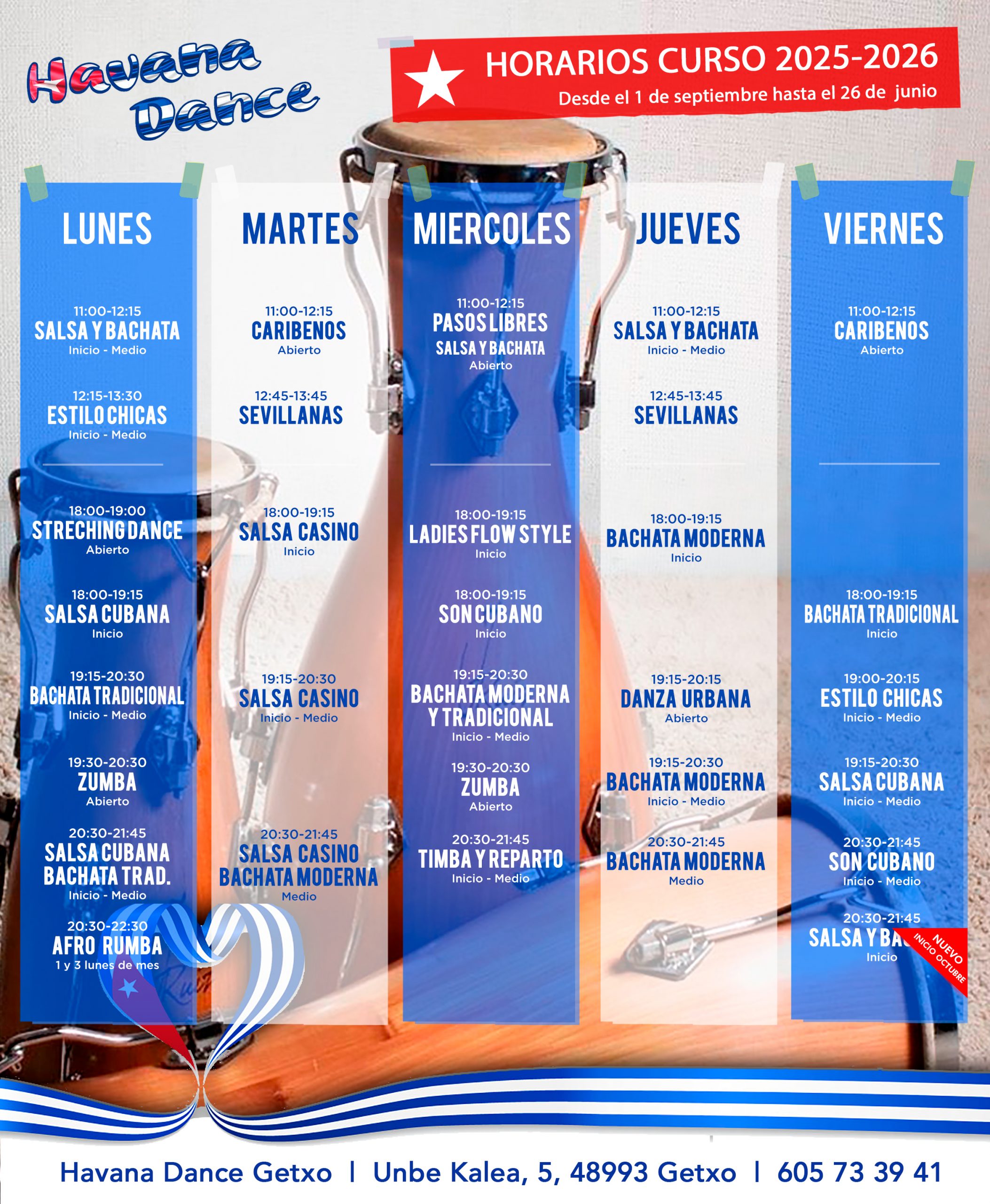 Periódicamente se imparten intensivos especificos como: afrocubano, estilo chicos o chicas, parejas,… todos ellos impartidos por prestigiosos profesores.