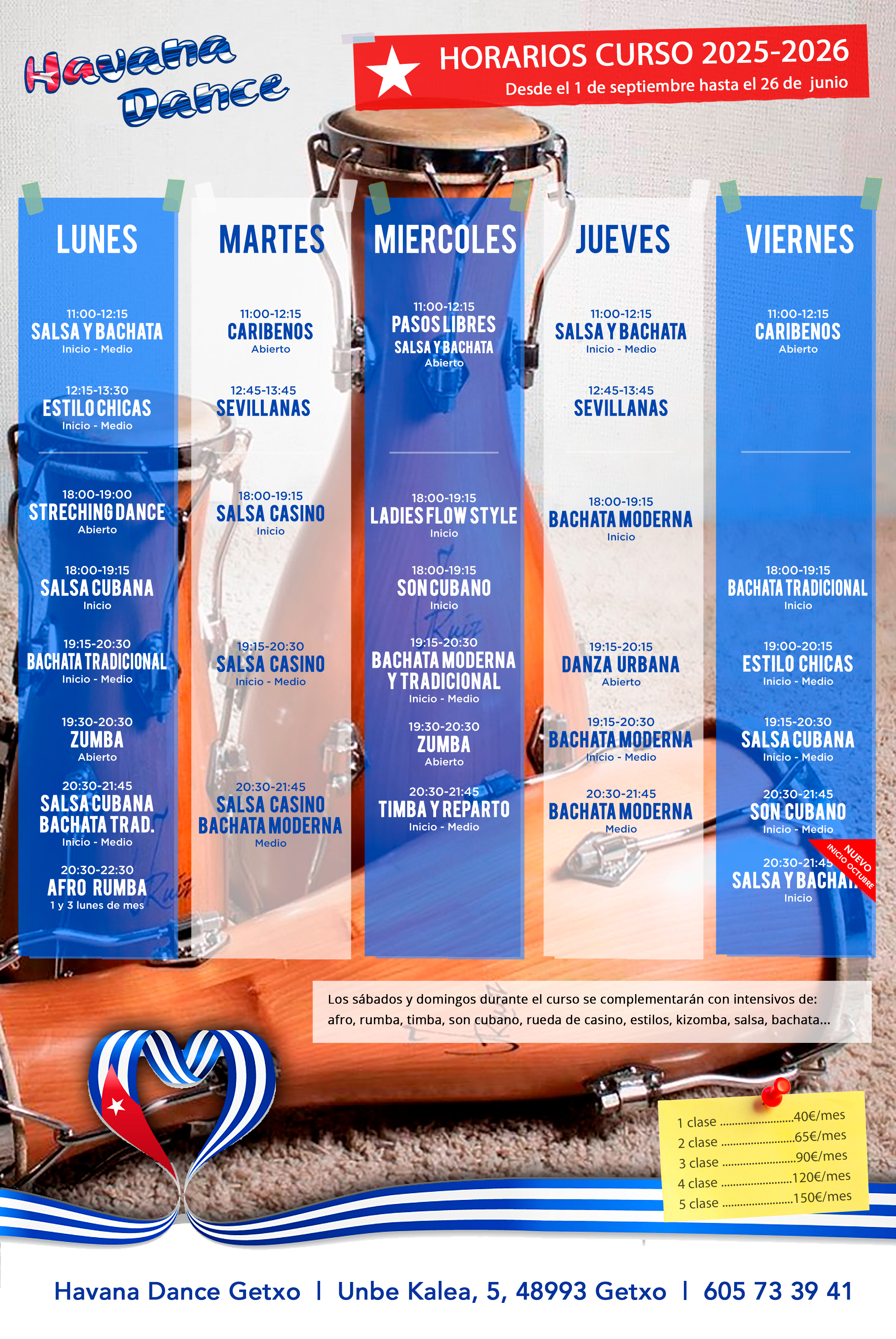 Periódicamente se imparten intensivos especificos como: afrocubano, estilo chicos o chicas, parejas,… todos ellos impartidos por prestigiosos profesores.